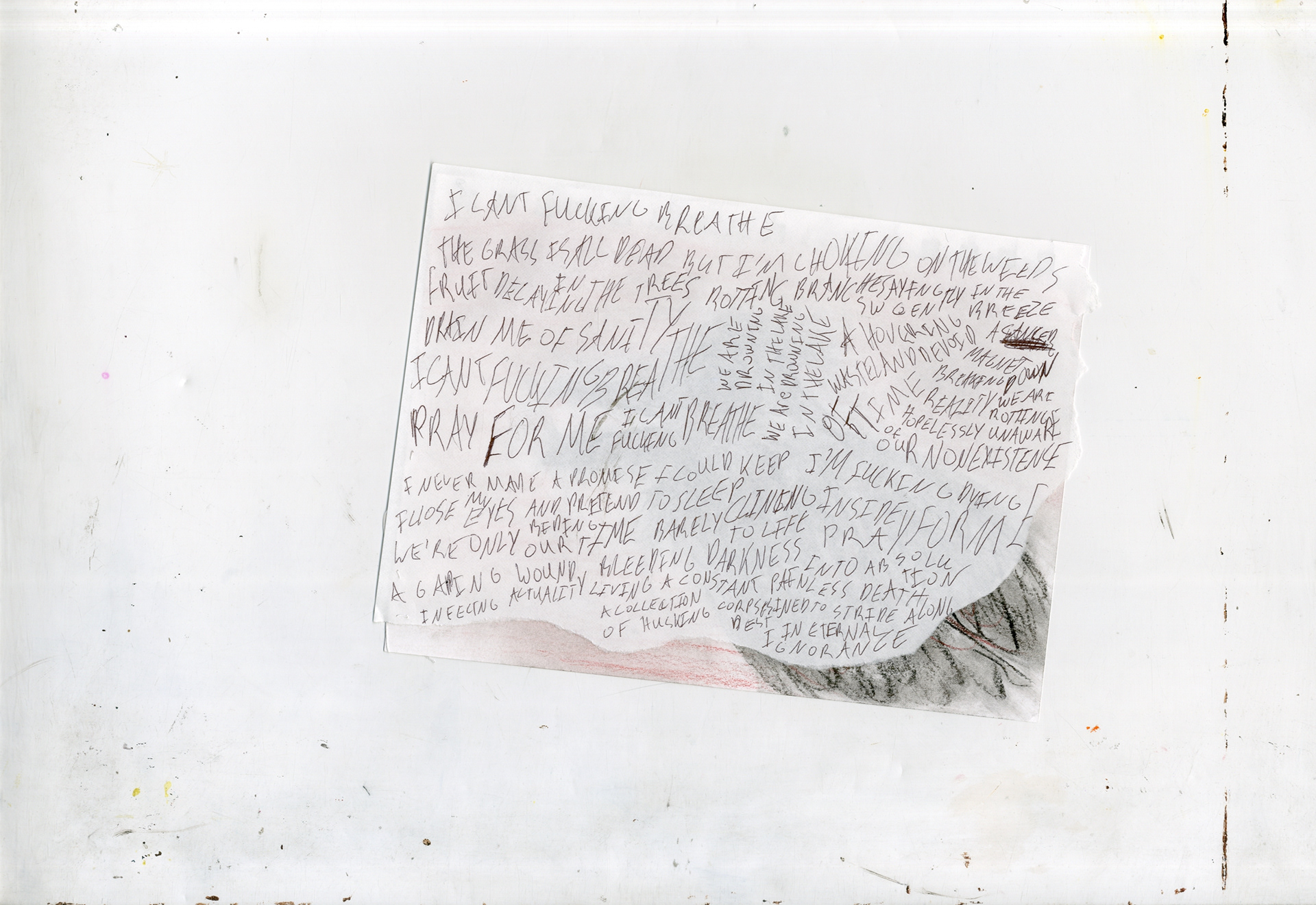 This series is a personal reflection on the climate crisis and climate grief, taking inspiration from and using the lyrics from the The Acacia Strain’s latest album Slow Decay, which deals with themes of climate grief and the imminent environmental crisis. Climate grief is defined as the grief felt in response to experienced or anticipated ecological losses, including the loss of species, ecosystems, and meaningful landscapes as a result of immediate or chronic environmental change.